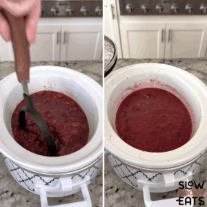- Mash berries with a potato masher; if you want a completely smooth sauce, strain and return to the slow cooker.